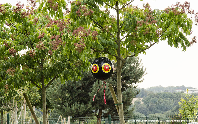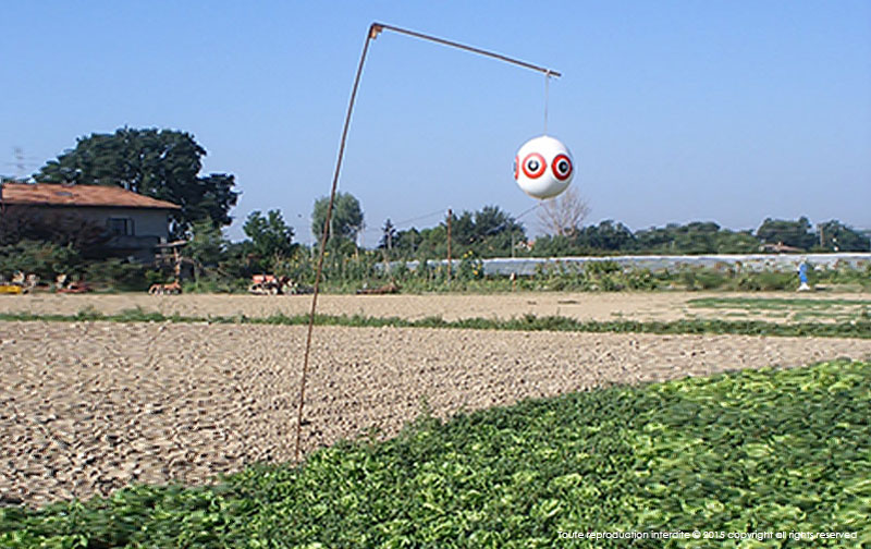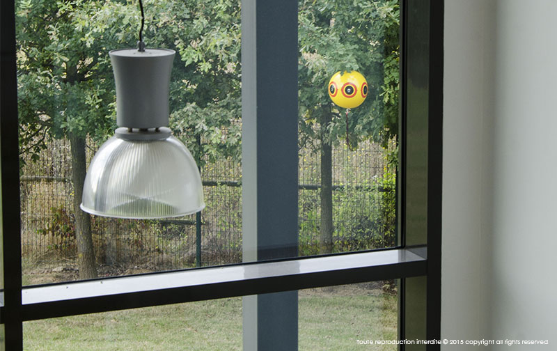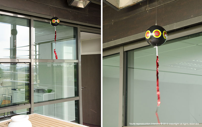 Les mouvements du ballon et des rubans métalliques de bas en haut et de gauche à droite simulant un véritable prédateur, effraient immédiatement les oiseaux.