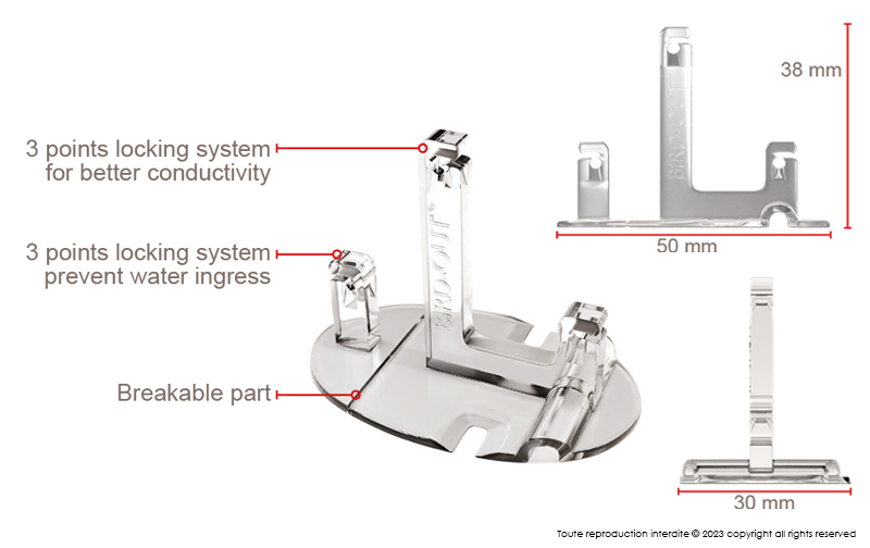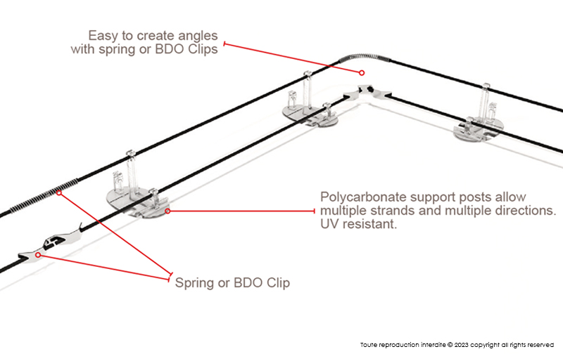 • The clip ensures perfect fixing of the rods akin to a « welding process », while still facilitating directional changes without strain or pressure.